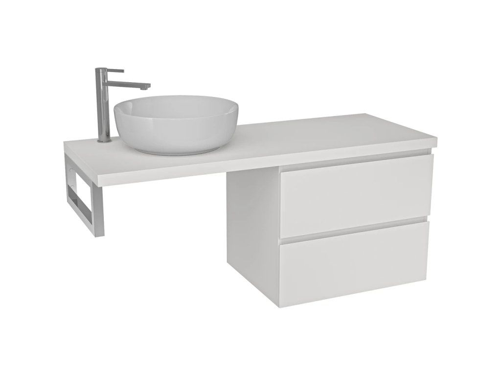 CERANO - Blat umywalkowy Navira Pro - 161x46,5x3,6 cm - Szafka Carole 79 cm - biały mat - konsola chromowana