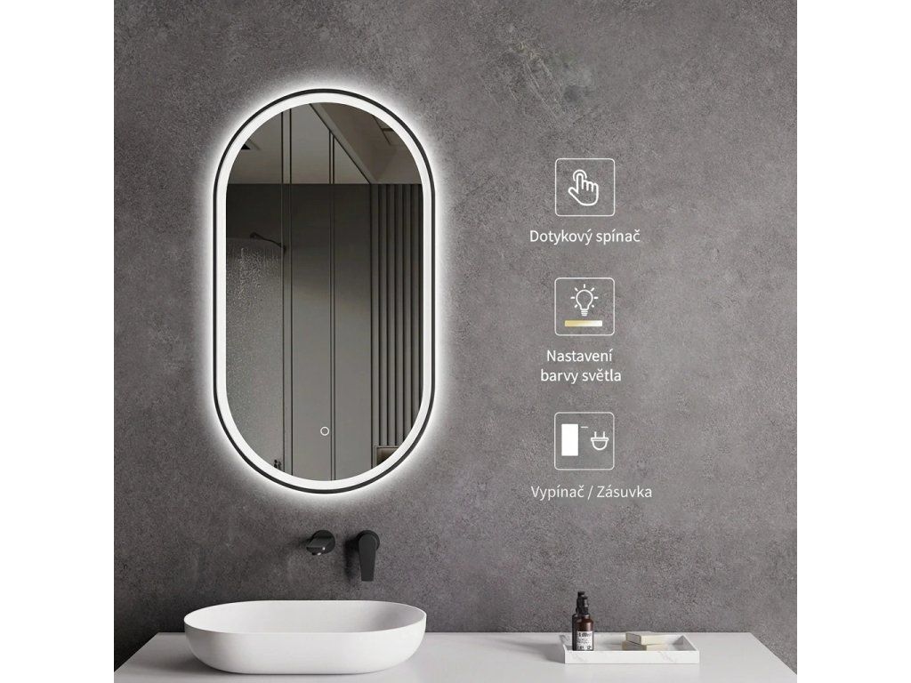 CERANO - Lustro łazienkowe Alto LED, rama metalowa - matowa czerń - 55x100 cm