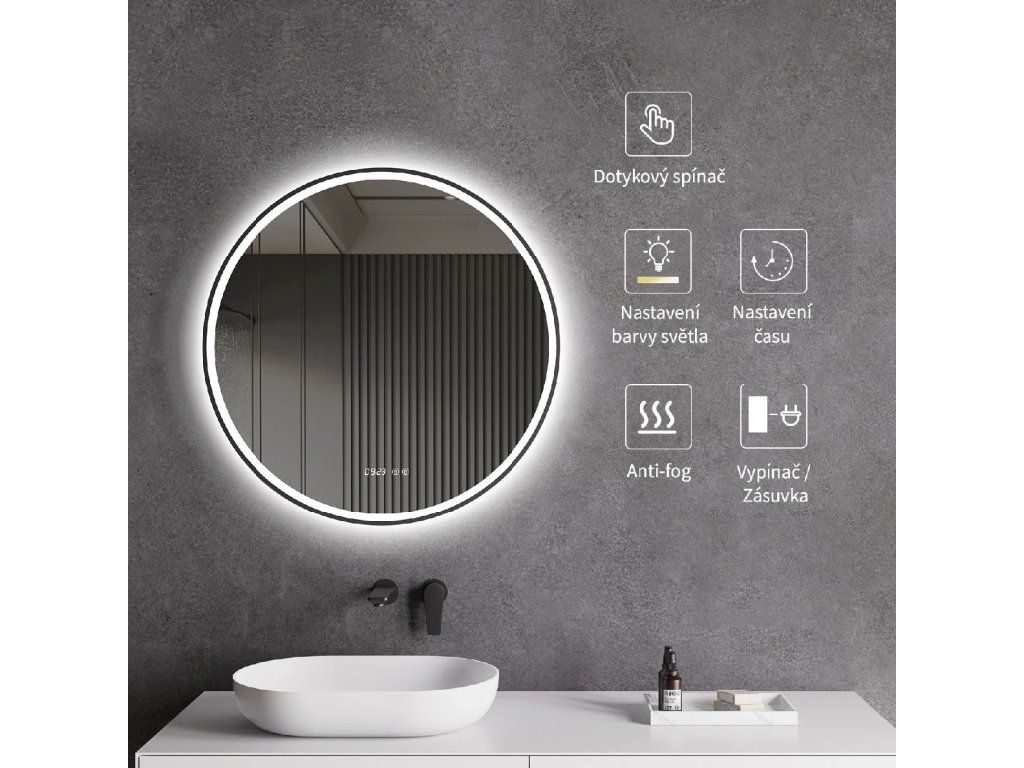 Cerano to lustro do Twojej łazienki, które łączy nowoczesny design z wysoką funkcjonalnością. To wiszące, okrągłe lustro LED jest wyposażone w elegancką, czarną ramę o matowym wykończeniu, która doda Twojej łazience wyrafinowanego charakteru.