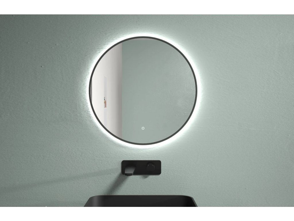 CERANO - Lustro łazienkowe LED Velo, rama metalowa - matowa czerń - Ø 60 cm