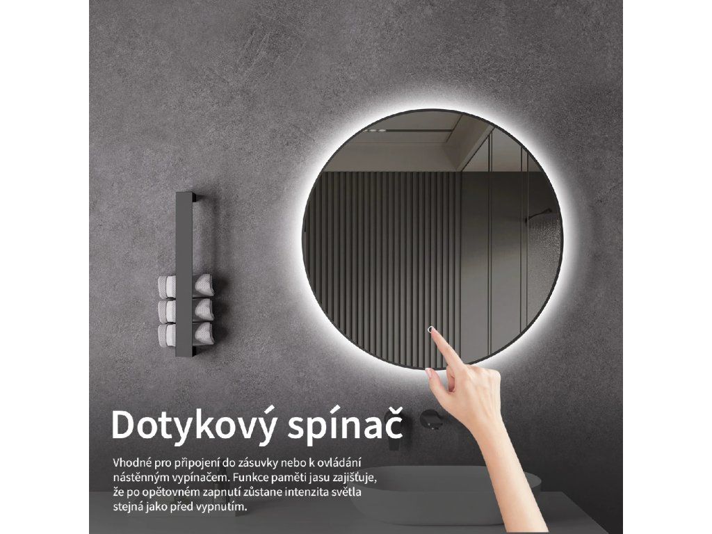 Lustra posiadają przycisk dotykowy, który włącza i wyłącza światło. Można je również podłączyć do klasycznego włącznika ściennego, ale nawet jeśli wyłączysz światło włącznikiem, po ponownym włączeniu musisz ponownie włączyć światło bezpośrednio na lustrze za pomocą przycisku dotykowego. Lustro jest gotowe do bezpośredniego podłączenia do sieci elektrycznej, ale można je również podłączyć do gniazdka za pomocą adaptera (brak w zestawie). Dla bezpiecznego montażu zalecamy kontakt z wykwalifikowanym elektrykiem.