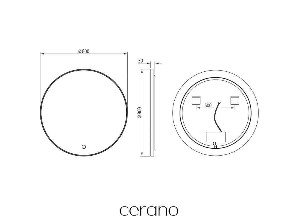 CERANO - Lustro łazienkowe LED Velo, rama metalowa - matowa czerń - Ø 80 cm
