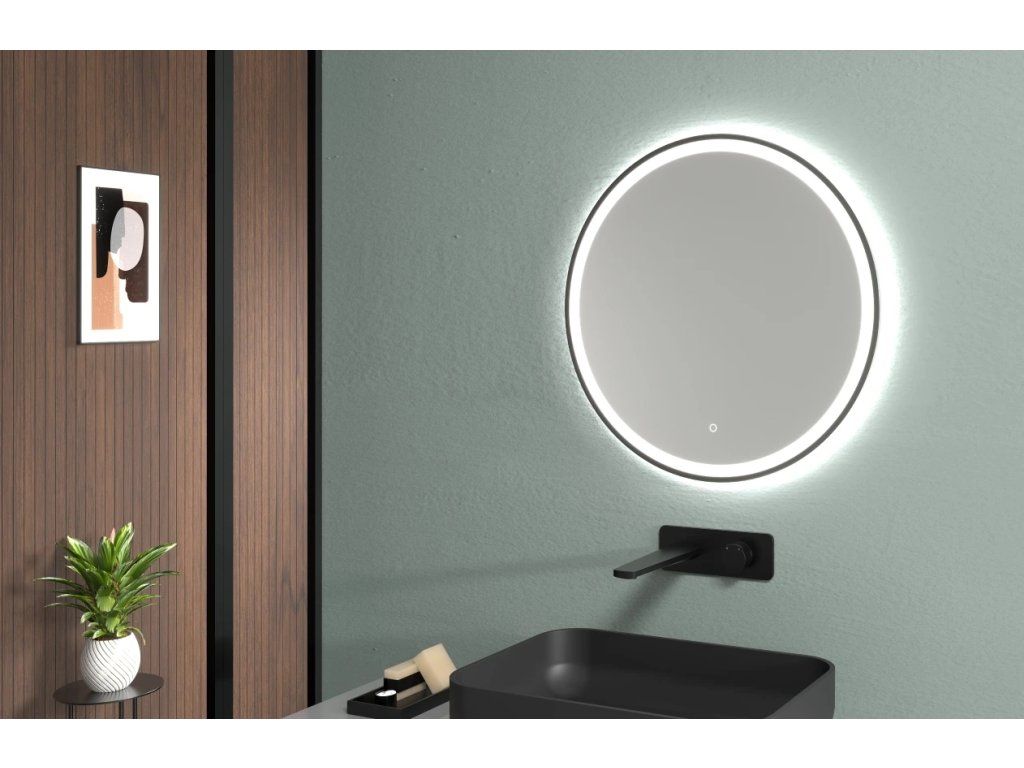 CERANO - Lustro łazienkowe LED Vito, rama metalowa - mat czarny - Ø 80 cm