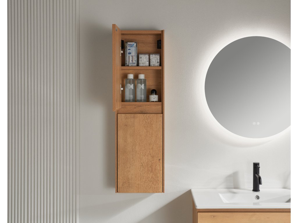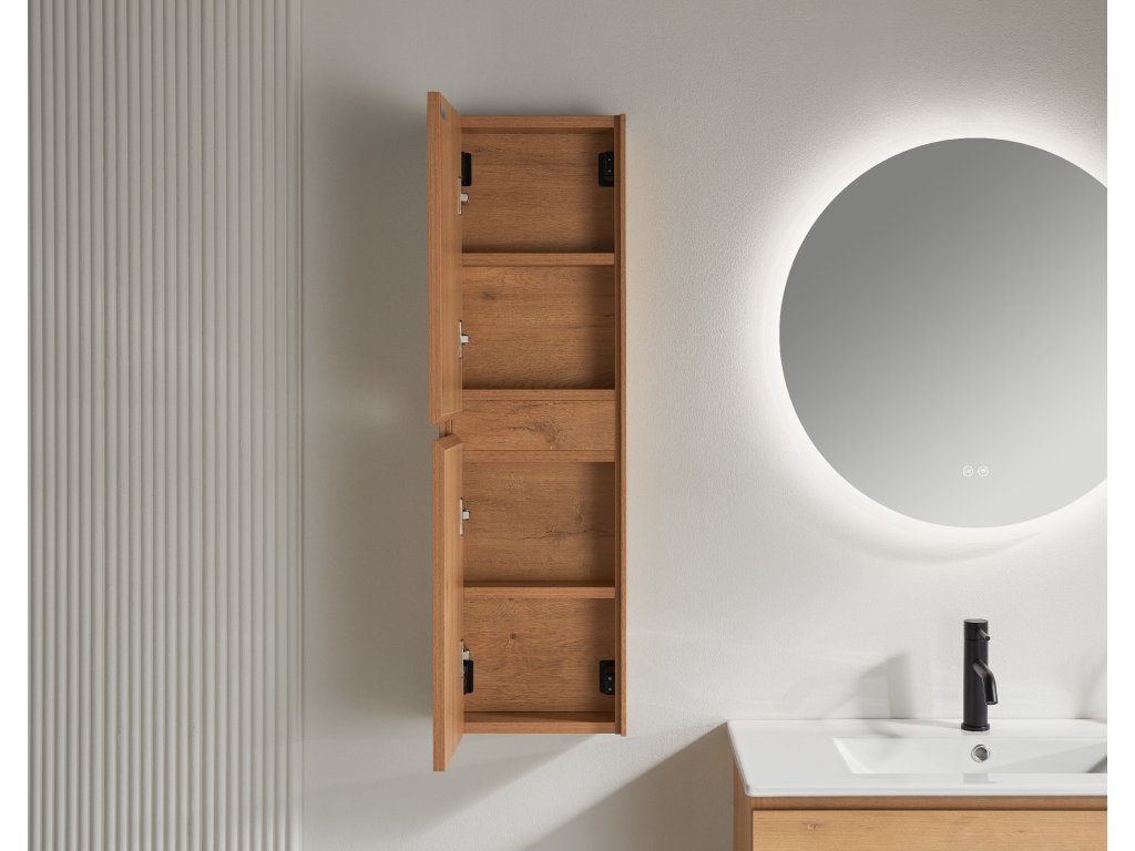CERANO - Wysoka szafka łazienkowa Noira - dąb miodowy - 30x100x15 cm