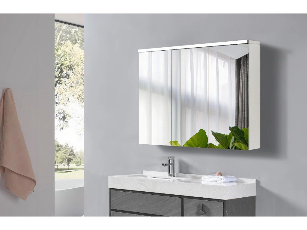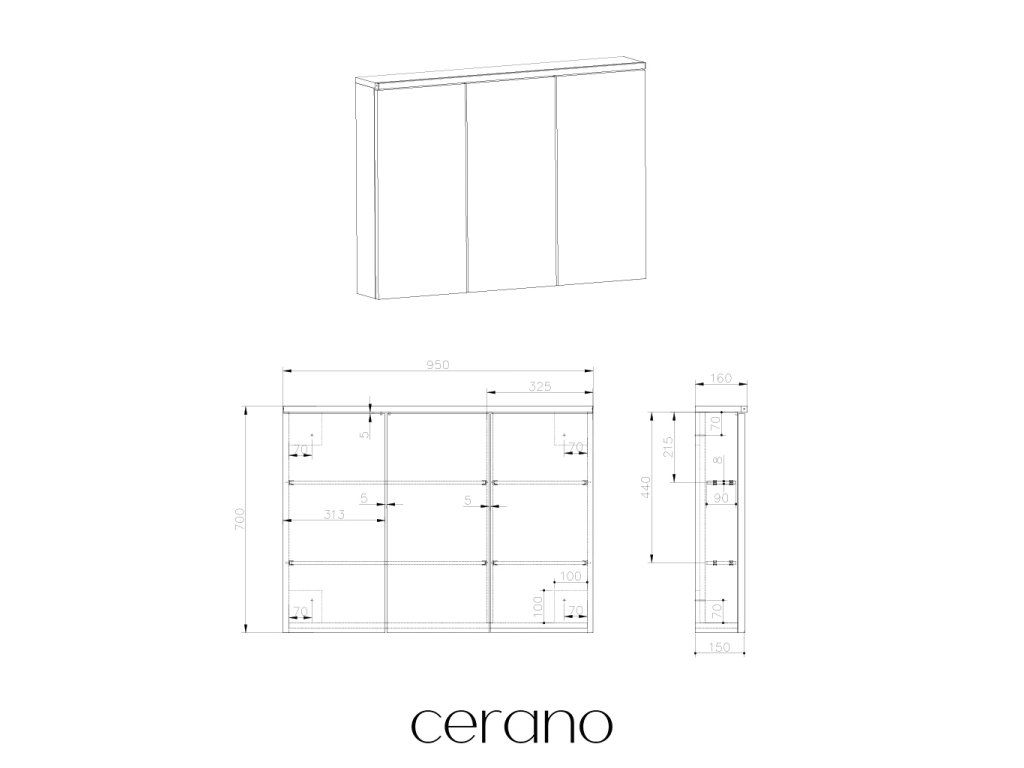 CERANO - Szafka łazienkowa z lustrem i oświetleniem LED Avia - biały mat - 95x70x16,5 cm