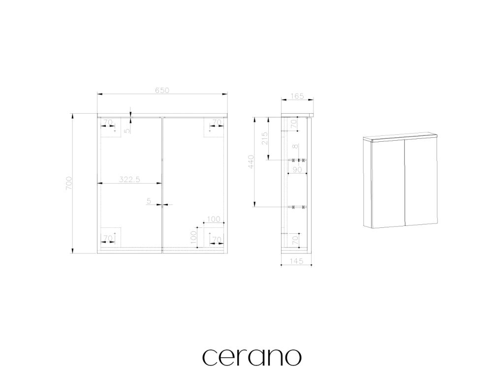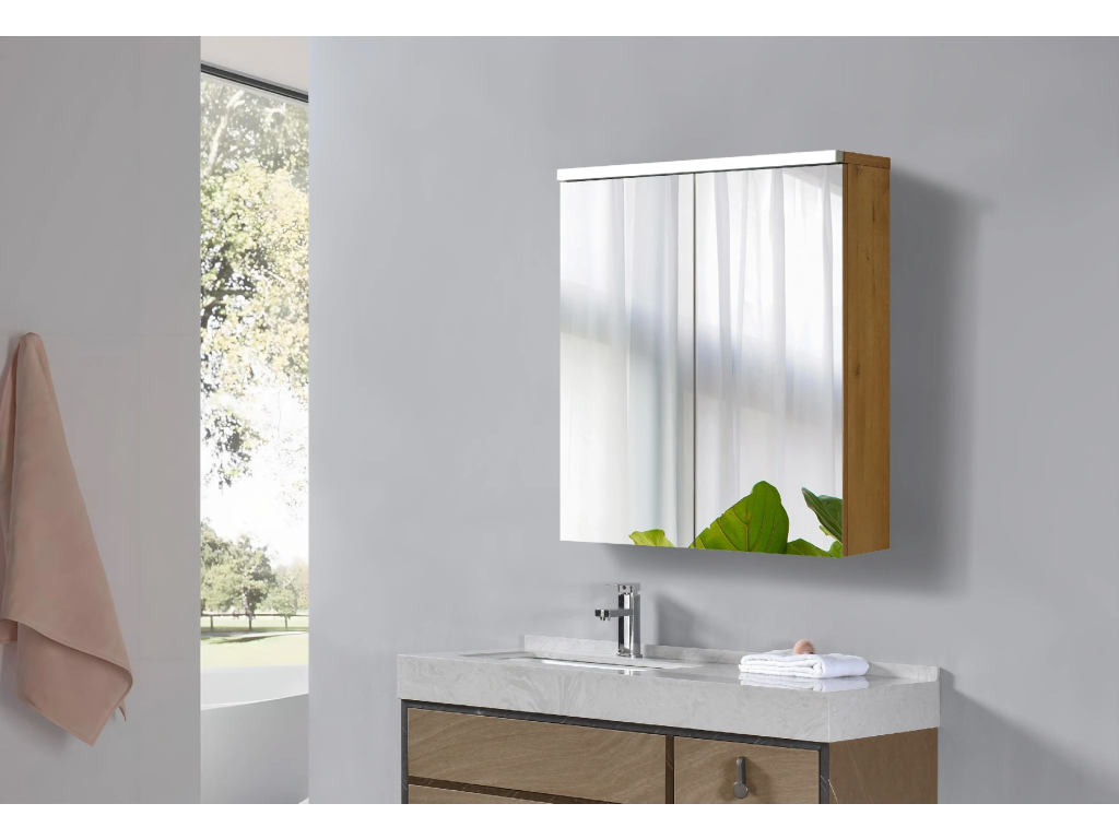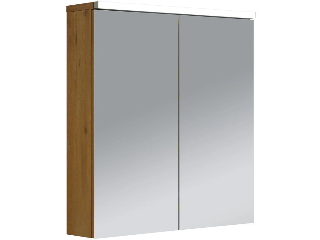 CERANO - Szafka łazienkowa z lustrem i oświetleniem LED Avia - dąb miodowy - 65x70x16,5 cm
