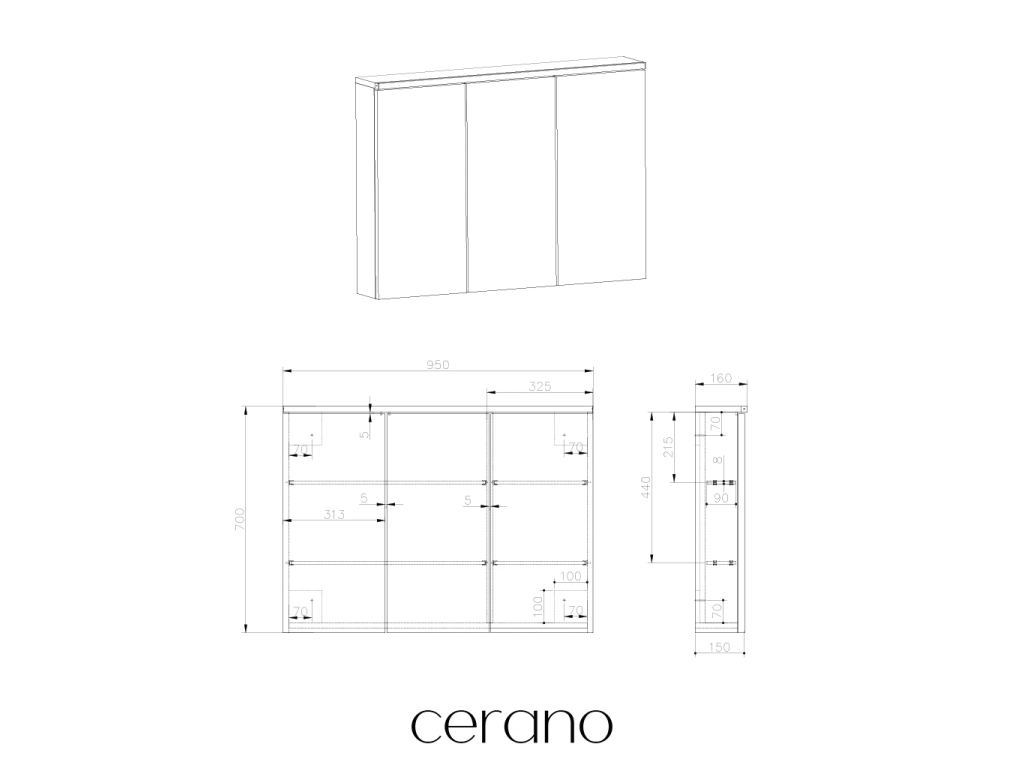 CERANO - Szafka łazienkowa z lustrem i oświetleniem LED Avia - dąb miodowy - 95x70x16,5 cm