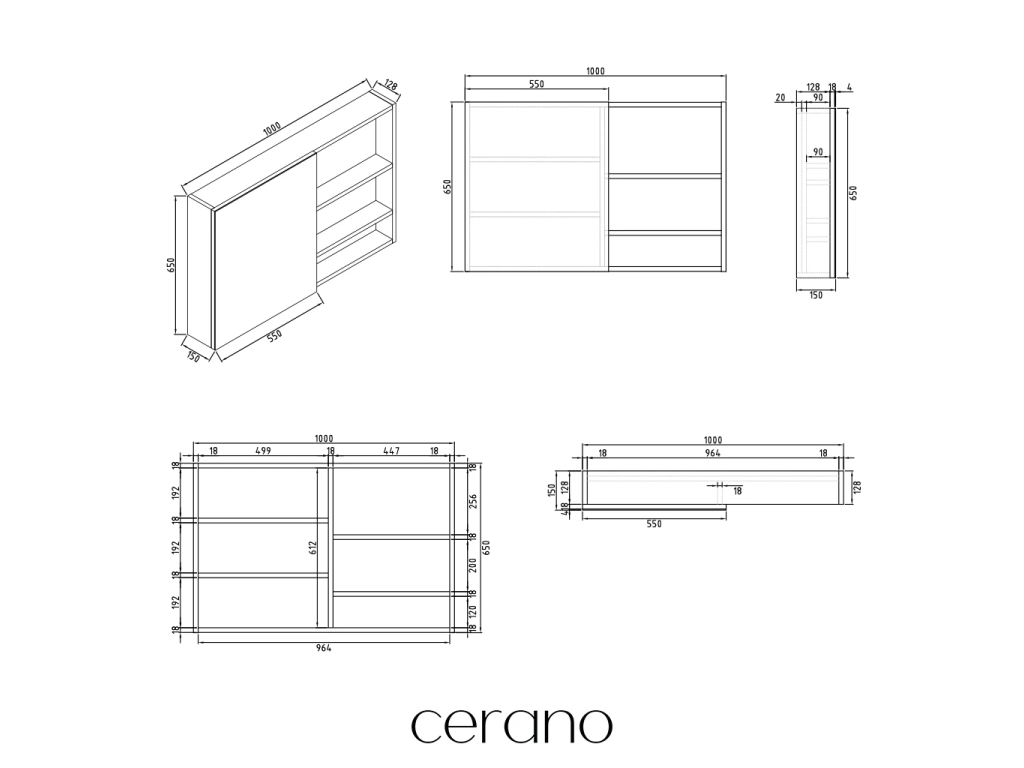 CERANO - Szafka łazienkowa z lustrem Orea - biały mat - 100x65x15 cm