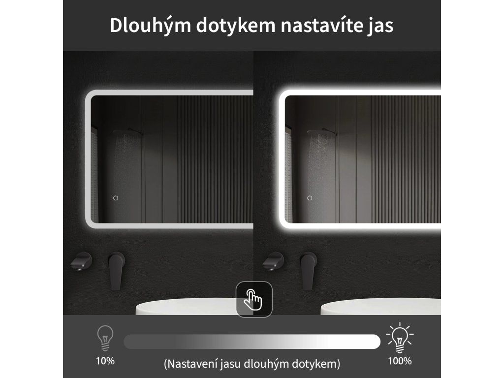 Oświetlenie lustra można łatwo i wygodnie włączyć, dotykając włącznika na panelu lustra. Pozwala to na szybką regulację oświetlenia bez konieczności sięgania po bardziej oddalony, tradycyjny włącznik.