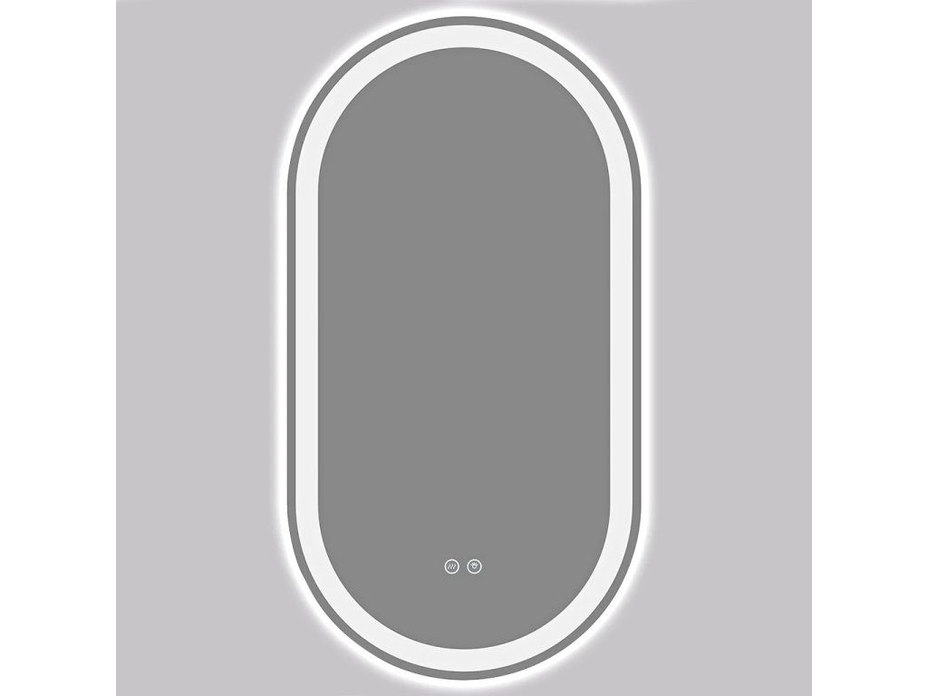 Lustro wyposażone jest w oświetlenie LED, które świeci zarówno w kierunku ściany od tyłu, jak i bezpośrednio do wnętrza poprzez jednolity pas świetlny w lustrze. Oświetlenie tylne tworzy delikatny efekt świetlny na obwodzie, a oświetlenie przednie zapewnia równomierne oświetlenie twarzy i przestrzeni przed lustrem. Oba elementy świetlne wzajemnie się uzupełniają, zapewniając równomierne i funkcjonalne oświetlenie łazienki.