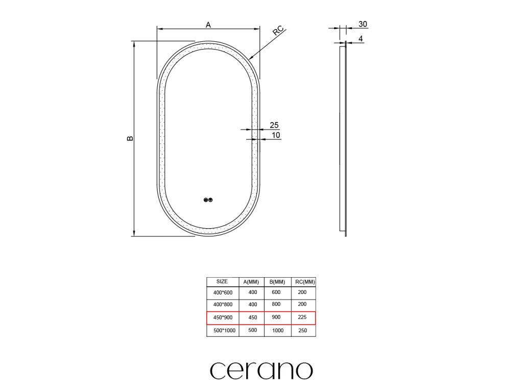 CERANO - Lustro łazienkowe LED Ayvo - 45x90 cm