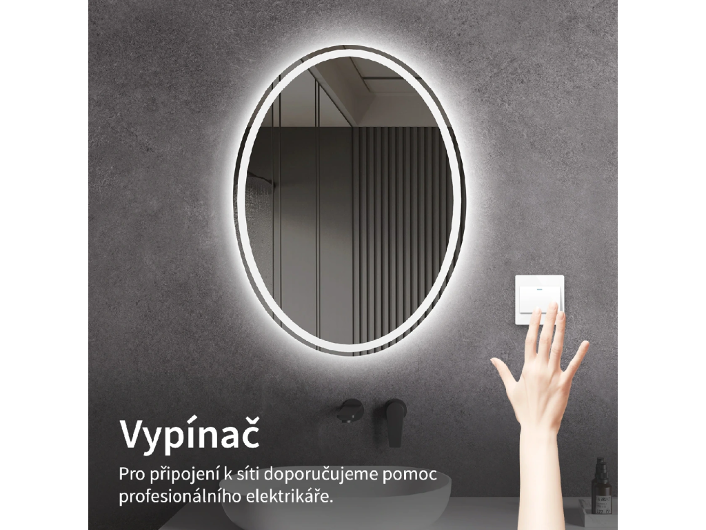 Oświetlenie lustra można włączyć za pomocą przełącznika ściennego. Lustro musi być podłączone bezpośrednio do domowej sieci elektrycznej. Przed montażem zalecamy kontakt z wykwalifikowanym elektrykiem w celu zapewnienia prawidłowego i bezpiecznego podłączenia.