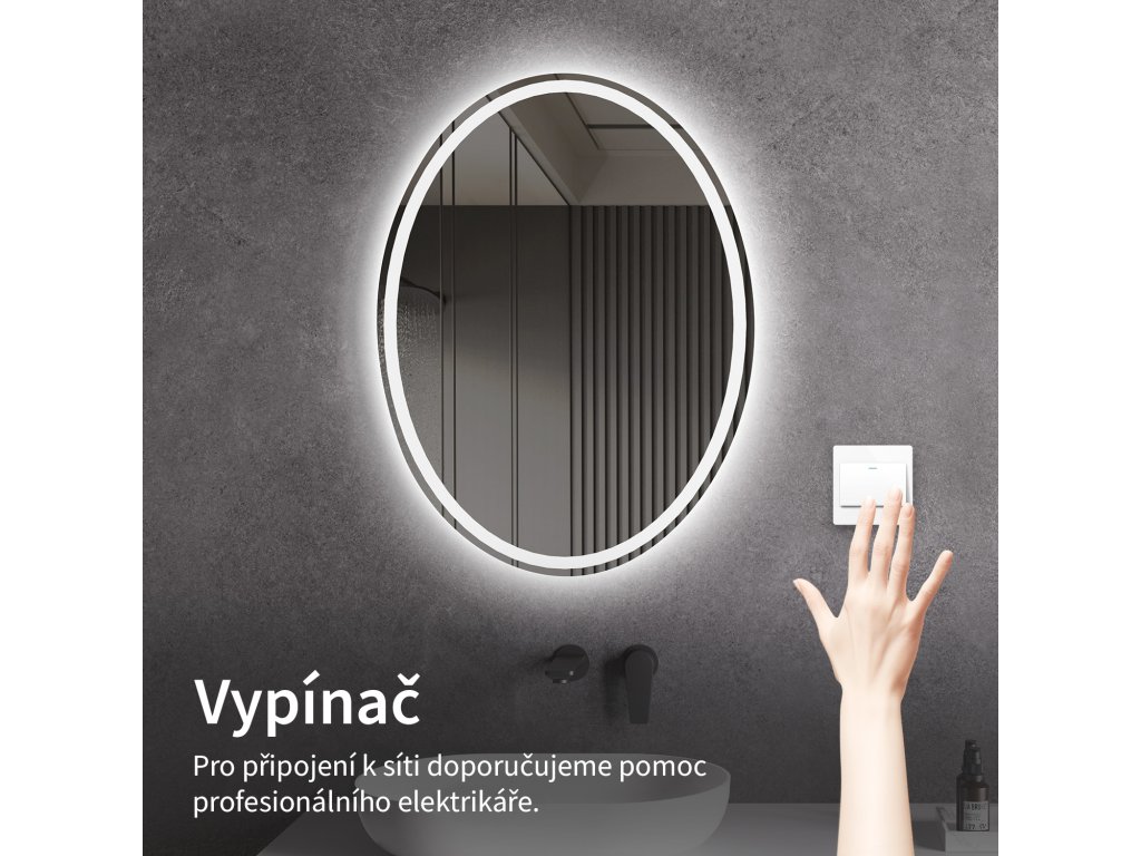 Oświetlenie lustra można włączyć za pomocą przełącznika ściennego. Lustro musi być podłączone bezpośrednio do domowej sieci elektrycznej. Przed montażem zalecamy kontakt z wykwalifikowanym elektrykiem w celu zapewnienia prawidłowego i bezpiecznego podłączenia.