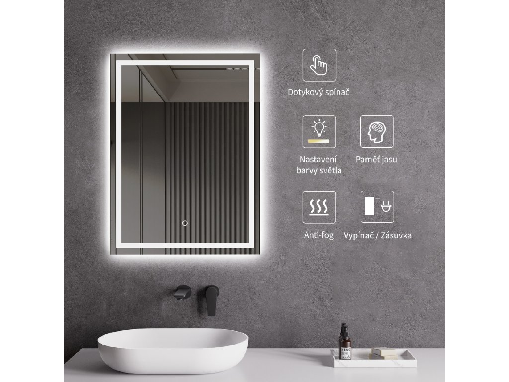 Lustro wyposażone jest w oświetlenie LED z regulowaną barwą światła – od 3000 K (ciepłe) do 6000 K (zimne). Kolory można łatwo zmieniać za pomocą dotykowego przycisku na powierzchni lustra. Zapewnia ono intensywne i jasne światło do precyzyjnej pielęgnacji, a także przyjemne, delikatne oświetlenie sprzyjające relaksowi. Dzięki szerokiej gamie temperatur barwowych z łatwością dostosujesz nastrój do swoich aktualnych potrzeb.