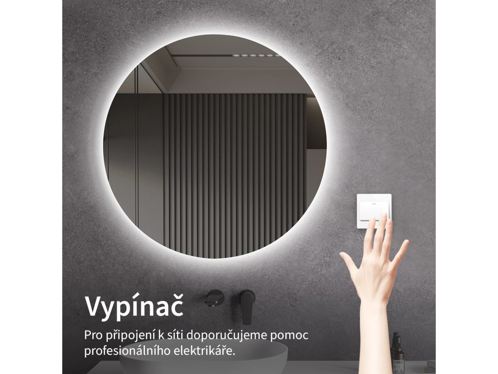 Oświetlenie lustra można włączyć za pomocą przełącznika ściennego. Lustro musi być podłączone bezpośrednio do domowej sieci elektrycznej. Przed montażem zalecamy kontakt z wykwalifikowanym elektrykiem w celu zapewnienia prawidłowego i bezpiecznego podłączenia.