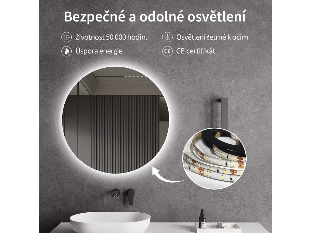 Lustro wyposażone jest w oświetlenie LED o chłodnej barwie – 4000 K. Zapewnia intensywne i jasne światło, które pozwala dostrzec nawet najdrobniejsze szczegóły. Idealne do codziennej pielęgnacji skóry.