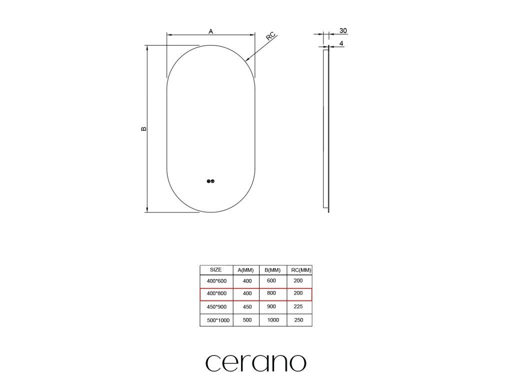 CERANO - Lustro łazienkowe LED Luno - 40x80 cm