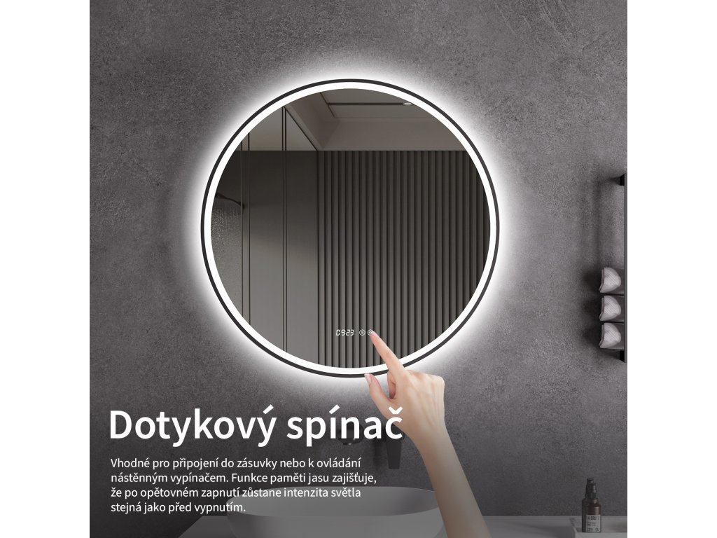 Lustro LED posiada ściemniacz, który pozwala precyzyjnie regulować natężenie światła. Wystarczy dotknąć pola czujnika, aby włączyć lub wyłączyć światło. Przytrzymaj palec, aby dostosować jasność w razie potrzeby – światło płynnie zwiększa lub zmniejsza natężenie, zapewniając zawsze idealne oświetlenie, dokładnie dopasowane do Twoich potrzeb.