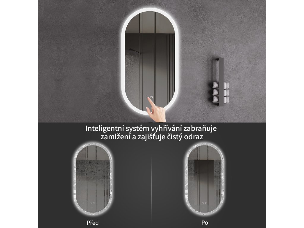 Lustro wyposażone jest w oświetlenie LED z regulowaną barwą światła – od 2800 K (ciepłe) do 6000 K (zimne). Zapewnia intensywne i jasne światło do precyzyjnej pielęgnacji, a także przyjemne i delikatne światło do relaksu. Dzięki szerokiej gamie temperatur barwowych możesz dostosować nastrój do swoich potrzeb.