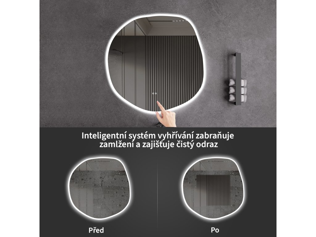 Lustro wyposażone jest w oświetlenie LED z regulowaną barwą światła – od 3000 K (ciepłe) do 6500 K (zimne). Kolory można łatwo zmieniać za pomocą dotykowego przycisku na powierzchni lustra. Zapewnia intensywne i jasne światło do precyzyjnej pielęgnacji, a także przyjemne, delikatne oświetlenie sprzyjające relaksowi. Dzięki szerokiej gamie temperatur barwowych z łatwością dostosujesz nastrój do swoich aktualnych potrzeb.