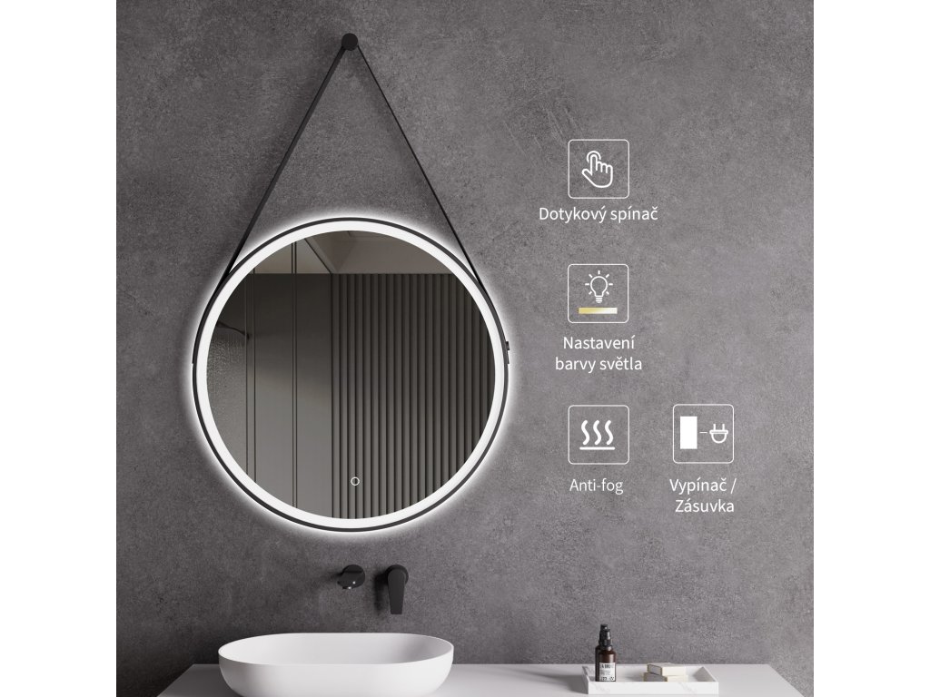 Cerano to lustro do Twojej łazienki, które łączy nowoczesny design z wysoką funkcjonalnością. To wiszące, okrągłe lustro LED jest wyposażone w elegancką, czarną ramę o matowym wykończeniu, która doda Twojej łazience wyrafinowanego charakteru.