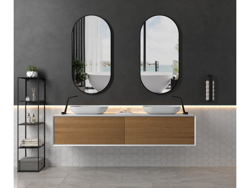 Cerano to lustro do Twojej łazienki, które łączy nowoczesny design z wysoką funkcjonalnością. To wiszące lustro ma elegancką czarną ramę o matowym wykończeniu, która doda Twojej łazience wyrafinowanego charakteru.