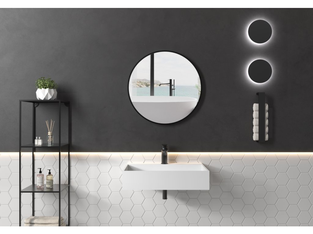 CERANO - Lustro łazienkowe Vado, rama metalowa - mat czarny - Ø 80 cm