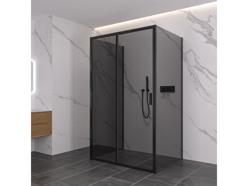 CERANO - Kabina prysznicowa trójścienna Varone LINE UL/P - 6 mm - matowa czerń, szkło grafitowe - 120x70x195 cm - przesuwna