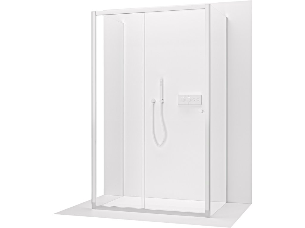 Dzięki regulowanemu profilowi przyściennemu o zakresie do 40 mm można łatwo wyregulować drzwi prysznicowe nawet w przypadku drobnych nierówności ściany lub odchyleń w otworze budowlanym. Ten przemyślany system ułatwia montaż i gwarantuje idealne dopasowanie drzwi. Regulacja dotyczy tylko drzwi – ścianka stała montowana jest w ustalonym wymiarze.