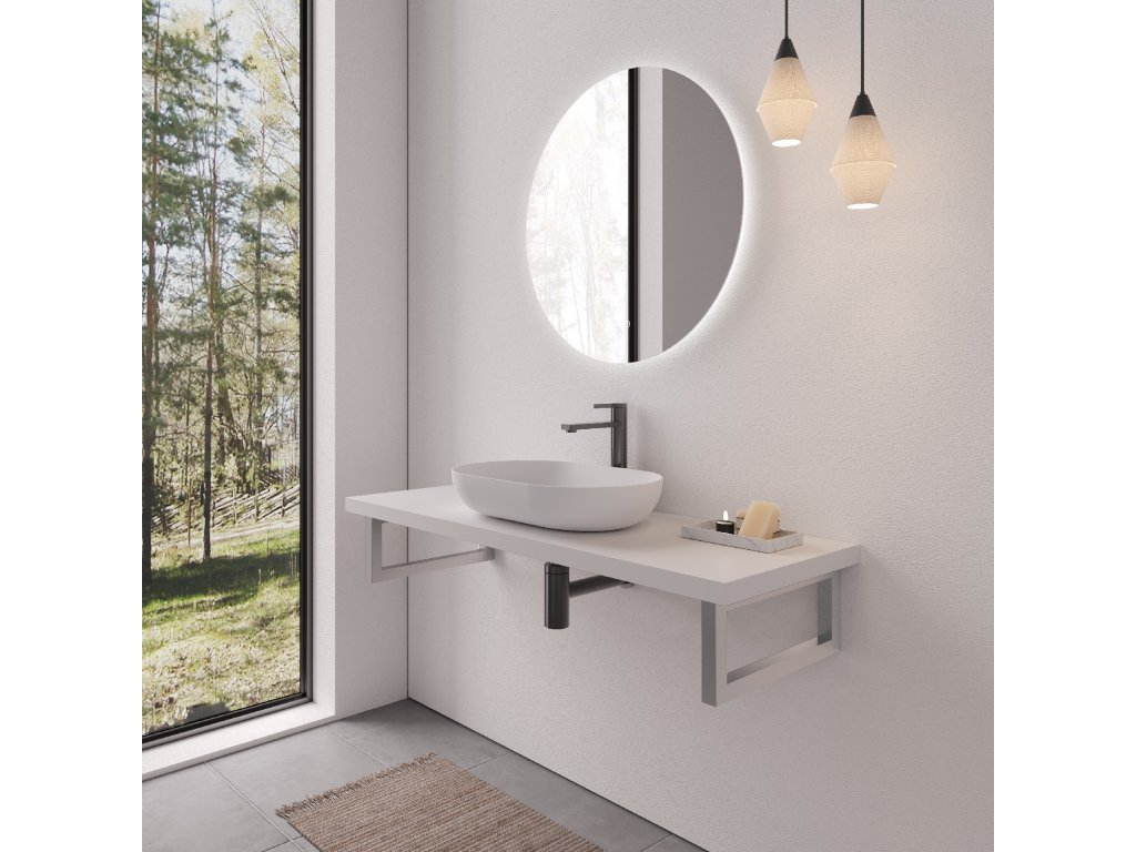CERANO - Umywalka nablatowa Navira Pro + 2 konsole podblatowe - biały mat - 101x46,5x3,6 cm