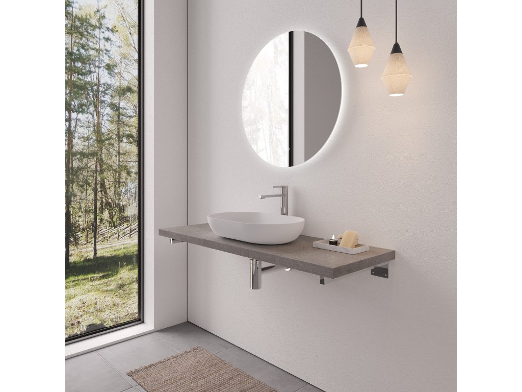 CERANO - Umywalka nablatowa Navira Pro + 2 ukryte konsole - betonowo-szary - 101x46,5x3,6 cm