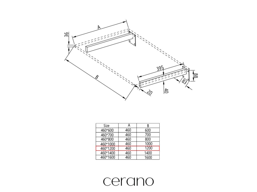 CERANO - Umywalka nablatowa Navira Pro + 2 ukryte konsole - betonowo-szary - 121x46,5x3,6 cm