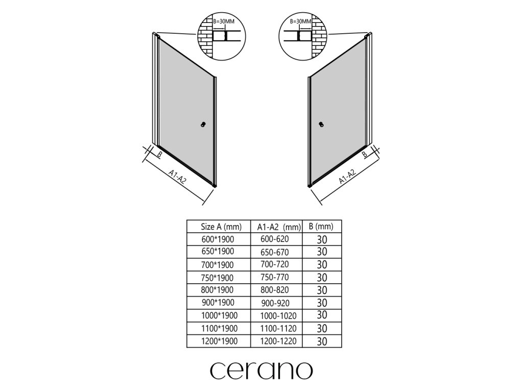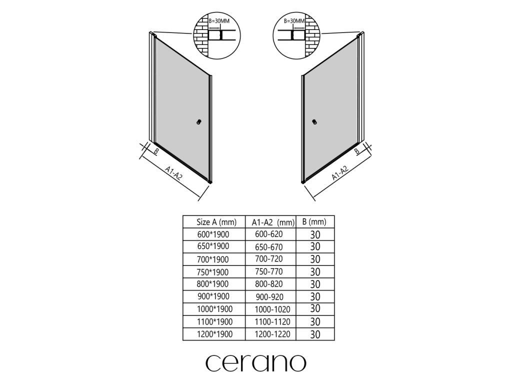 Profil rozszerzający Cerano został zaprojektowany tak, aby z łatwością dopasować drzwi prysznicowe Antelo do szerszych otworów w budynku .