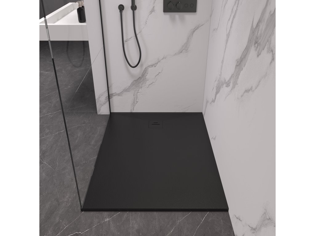 CERANO - Brodzik prostokątny Pablo - SMC/kompozyt mineralny - strukturalny czarny mat - 100x80 cm