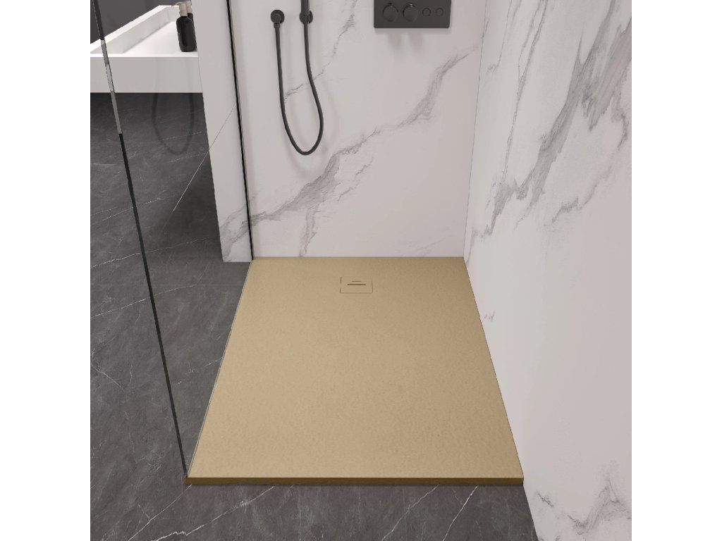 CERANO - Brodzik prostokątny Pablo - SMC/kompozyt mineralny - struktura kości słoniowej - 130x70x3 cm