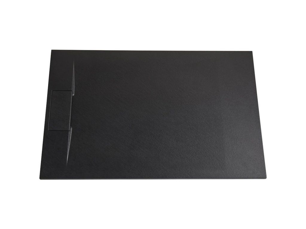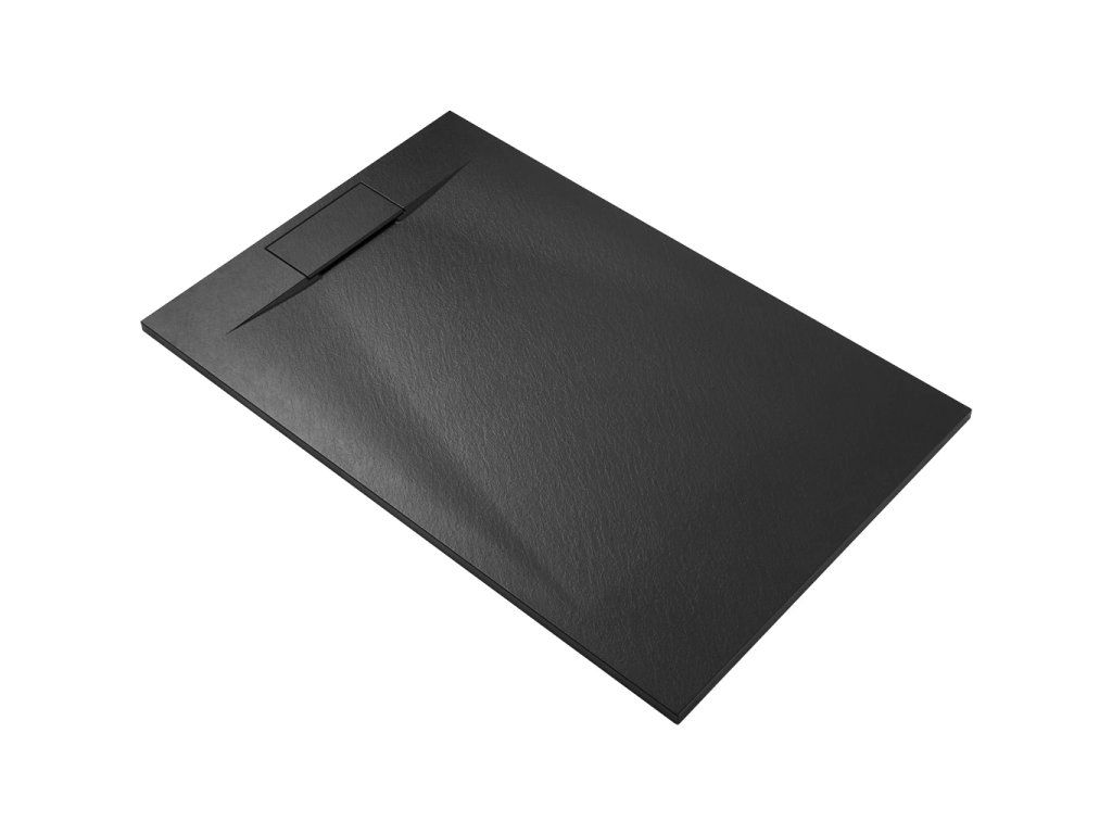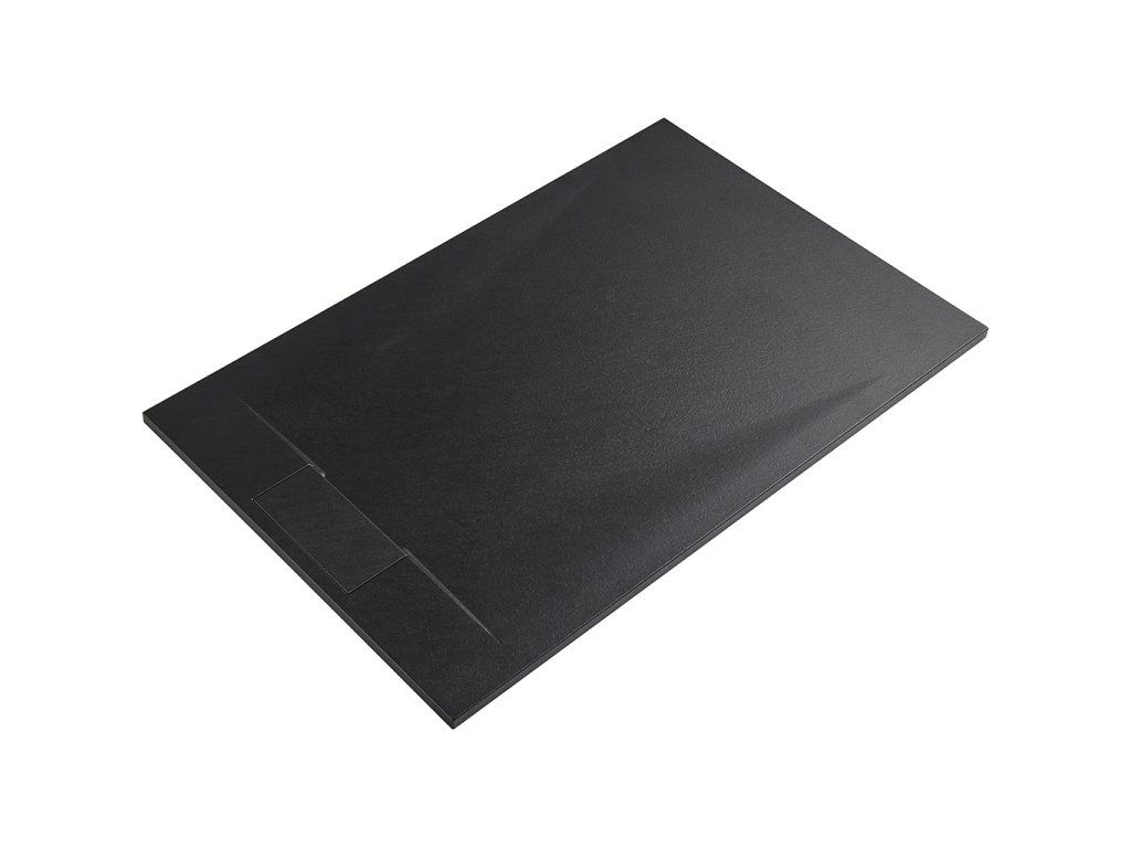 CERANO - Brodzik prostokątny Enzo - SMC/kompozyt mineralny - strukturalny czarny mat - 140x90x3 cm