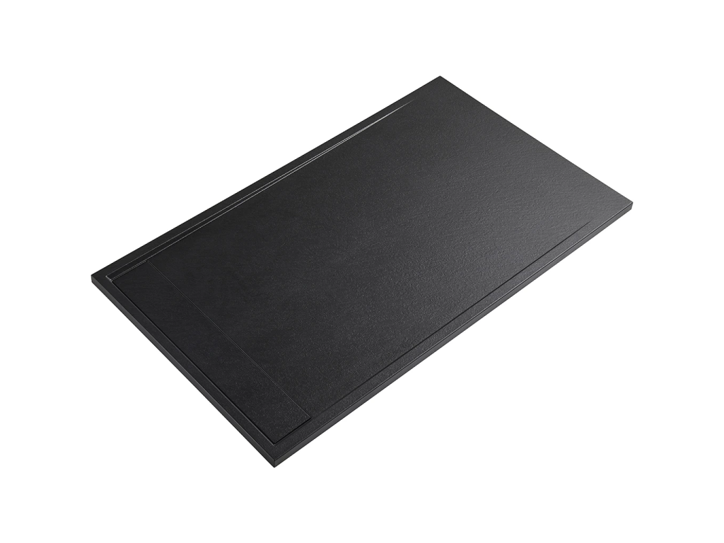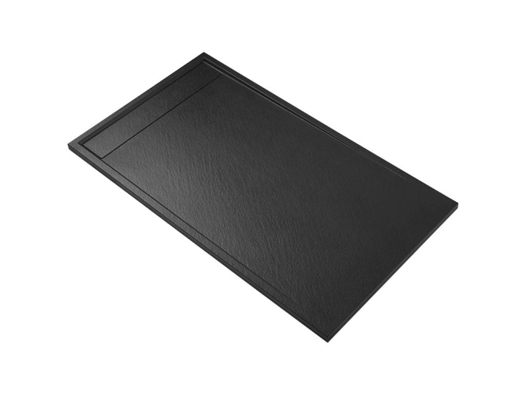 CERANO - Brodzik prostokątny Lugo - SMC/kompozyt mineralny - czarny mat - 140x80x3 cm