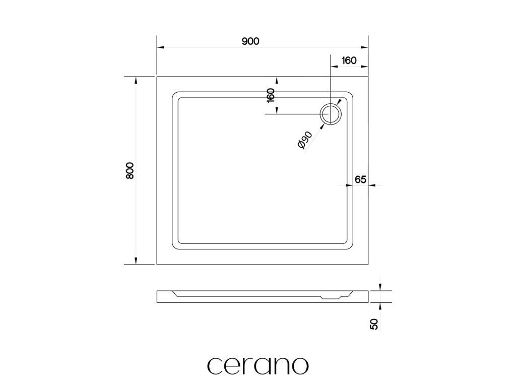 CERANO - Brodzik prostokątny Soto - akrylowy - biały połysk - 90x80x5 cm