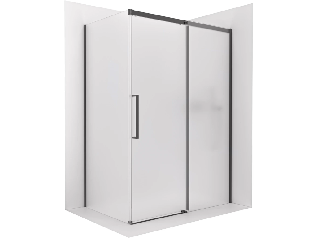 CERANO - Kabina prysznicowa Lantono - prawa - 8 mm - Soft Close - czarny mat, szkło mleczne - 140x70 cm - przesuwna