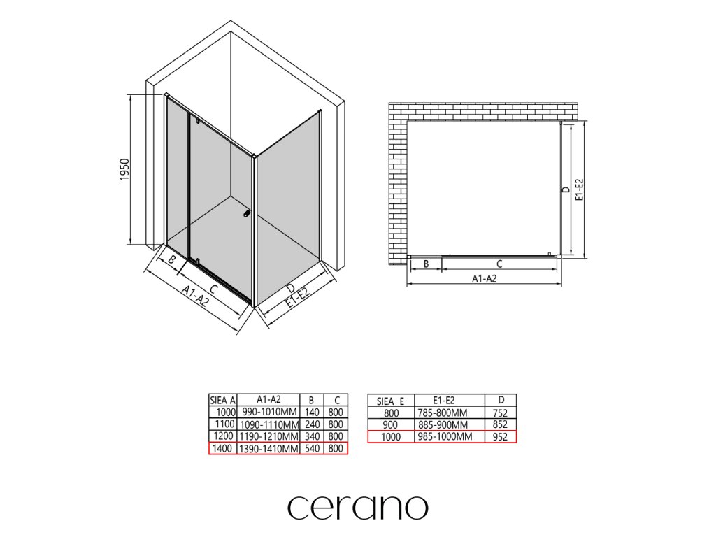 W ramach tej serii oferujemy szeroki wybór wymiarów, aby sprostać zróżnicowanym potrzebom naszych klientów. Wszystkie kabiny prysznicowe, drzwi i parawany CERANO są w pełni kompatybilne z brodzikami CERANO o tych samych wymiarach, co zapewnia bezproblemowy montaż i idealne dopasowanie. Ponadto kabinę można elastycznie zamontować – na pasującym brodziku lub bezpośrednio na podłodze, w zależności od preferencji i wyposażenia łazienki.