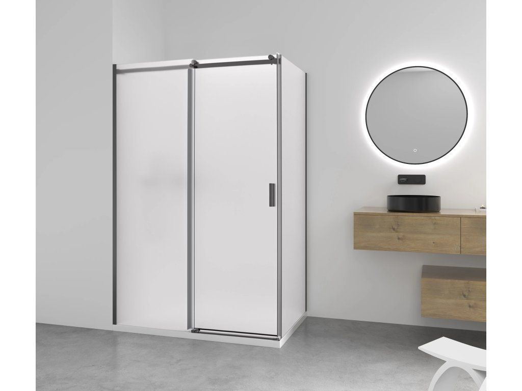 CERANO - Kabina prysznicowa Santoro - lewa - 6 mm - matowa czarna, szkło mrożone - 140x70 cm - przesuwna
