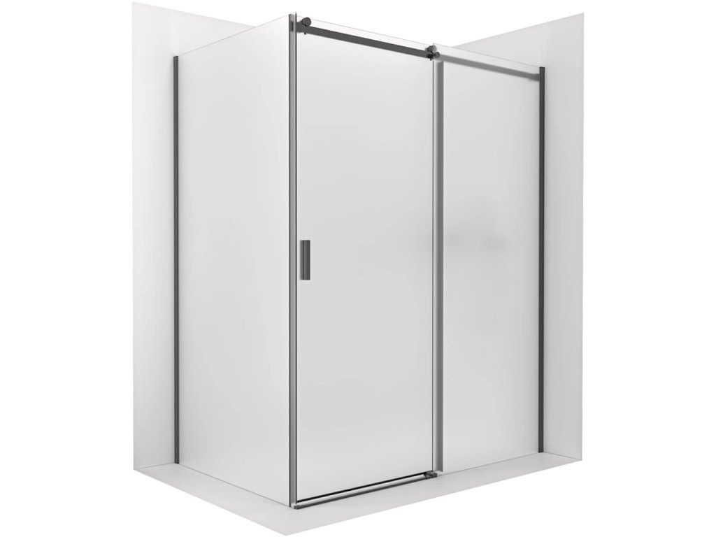 CERANO - Kabina prysznicowa Santoro - prawa - 6 mm - matowa czarna, szkło mrożone - 140x70 cm - przesuwna