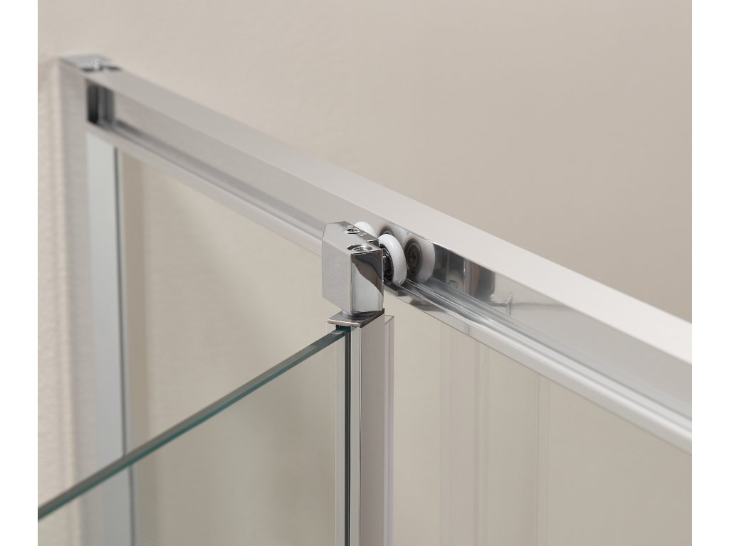 Drzwi prysznicowe Versaro wykorzystują innowacyjny mechanizm przesuwny, który umożliwia płynne przesuwanie drzwi wzdłuż prowadnic do kabiny prysznicowej za pomocą sworzni obrotowych w samosmarujących tulejach oraz kółek z łożyskami . To rozwiązanie oszczędza miejsce i nadaje się do montażu w mniejszych łazienkach , ponieważ drzwi nie zaburzają przestrzeni pomieszczenia .