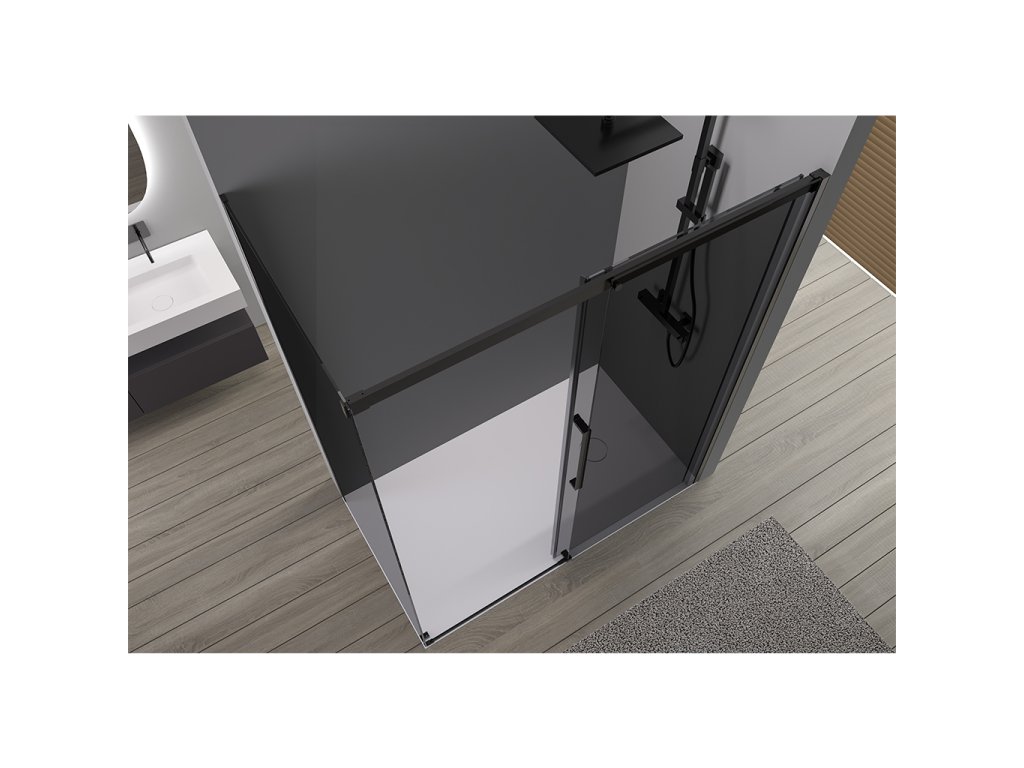 CERANO - Kabina prysznicowa Lantono L/P - 8 mm - Soft Close - matowa czerń, szkło grafitowe - 160x90x195 cm - przesuwna