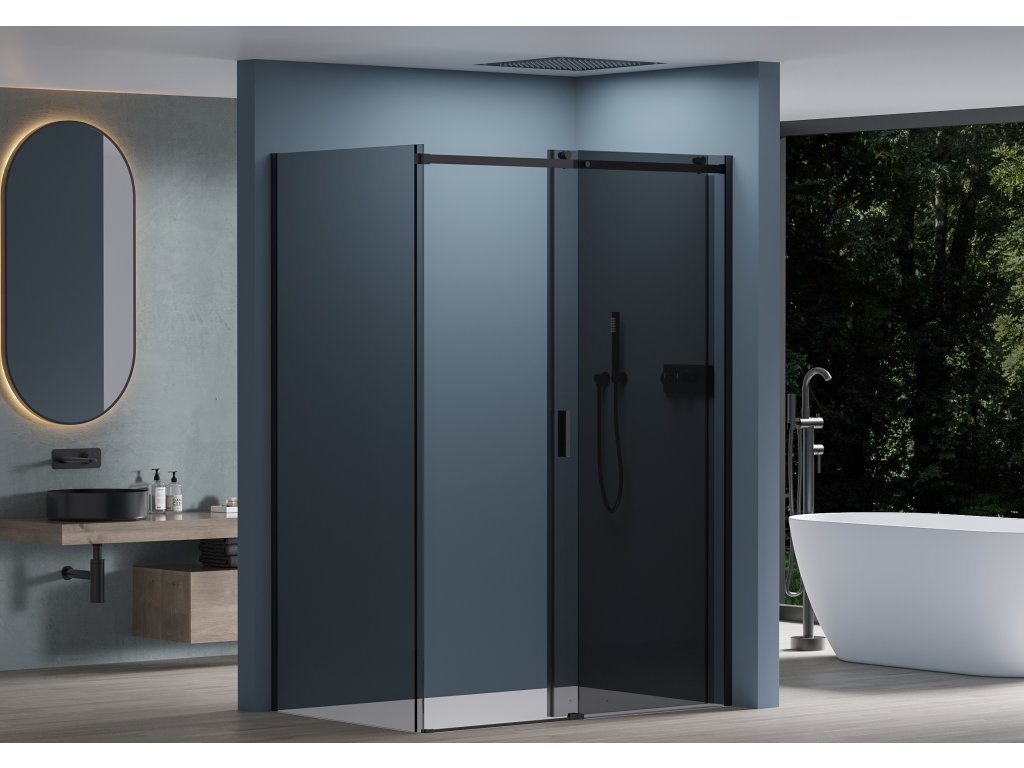 CERANO - Kabina prysznicowa Santoro L/P - 8 mm - matowa czerń, szkło grafitowe - 160x80x195 cm - przesuwna