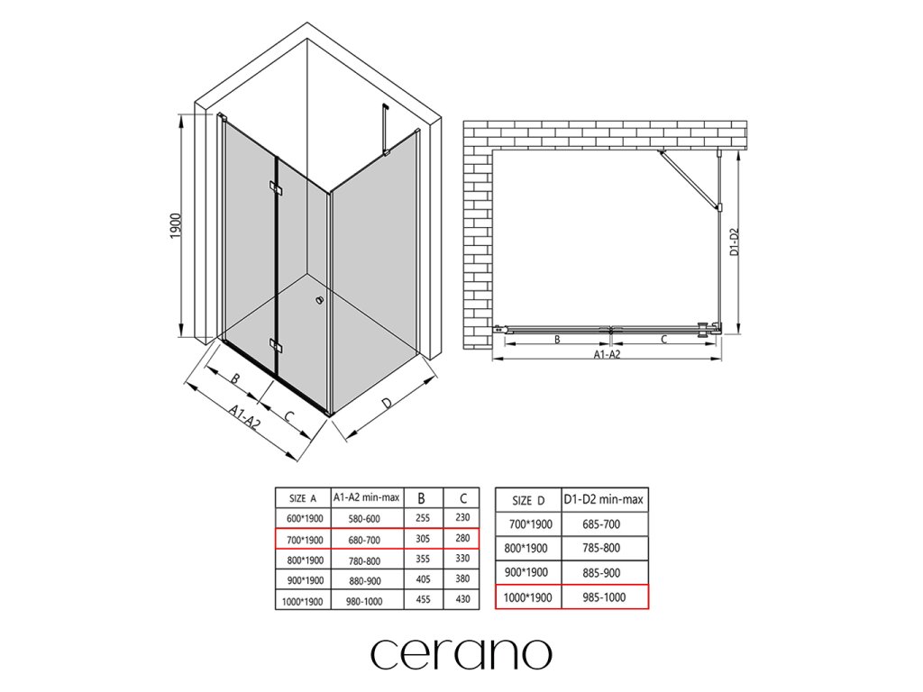 W ramach tej serii oferujemy szeroki wybór wymiarów, aby sprostać zróżnicowanym potrzebom naszych klientów. Wszystkie kabiny prysznicowe, drzwi i parawany Cerano są w pełni kompatybilne z brodzikami Cerano o tych samych wymiarach, co zapewnia bezproblemowy montaż i idealne dopasowanie. Ponadto kabinę prysznicową można elastycznie zamontować – na pasującym brodziku lub bezpośrednio na podłodze, w zależności od preferencji i wyposażenia łazienki.