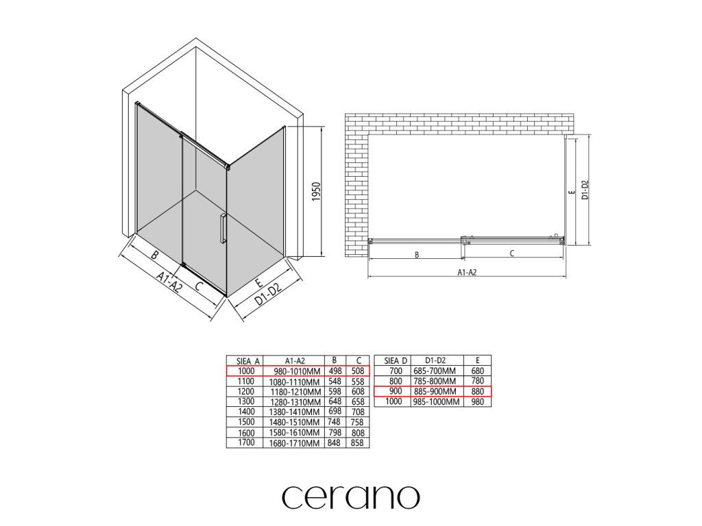 W ramach tej serii oferujemy szeroki wybór wymiarów, aby sprostać zróżnicowanym potrzebom naszych klientów. Wszystkie kabiny prysznicowe, drzwi i parawany CERANO są w pełni kompatybilne z brodzikami CERANO o tych samych wymiarach, co zapewnia bezproblemowy montaż i idealne dopasowanie. Ponadto kabinę można elastycznie zamontować – na pasującym brodziku lub bezpośrednio na podłodze, w zależności od preferencji i wyposażenia łazienki.