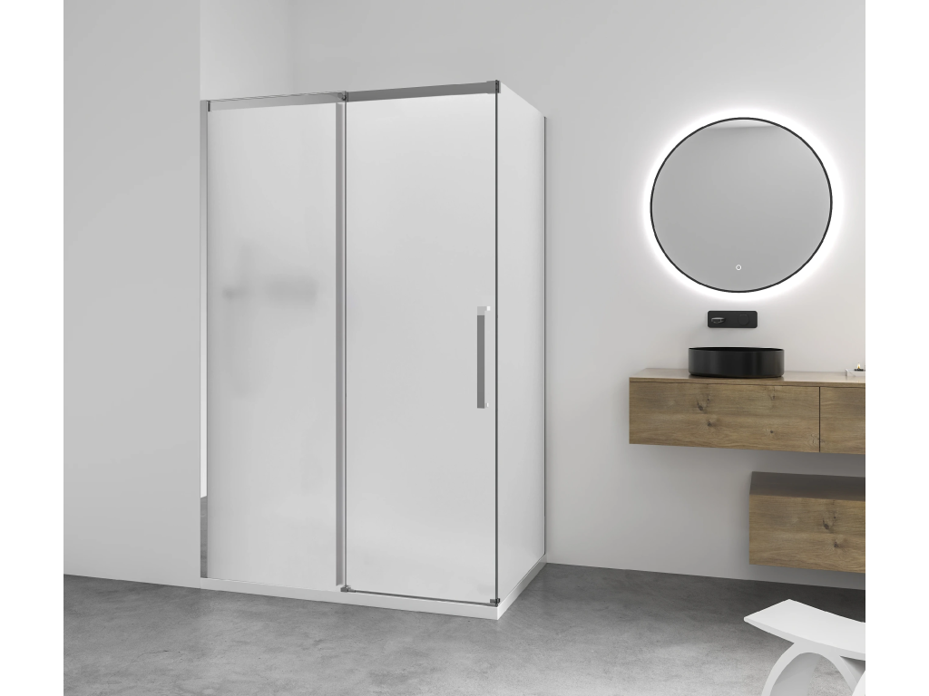 CERANO - Kabina prysznicowa Lantono - lewa - 8 mm - Soft-Close - chrom, szkło matowe - 100x80 cm - przesuwna