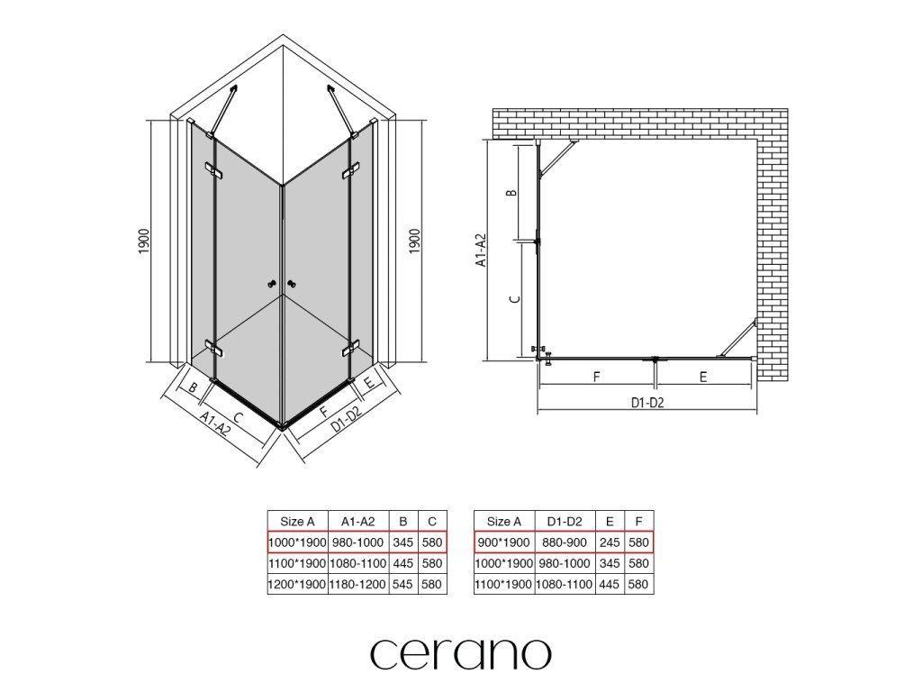 W ramach tej serii oferujemy szeroki wybór wymiarów, aby sprostać zróżnicowanym potrzebom naszych klientów. Wszystkie kabiny prysznicowe, drzwi i parawany CERANO są w pełni kompatybilne z brodzikami CERANO o tych samych wymiarach, co zapewnia bezproblemowy montaż i idealne dopasowanie. Ponadto kabinę można elastycznie zamontować – na pasującym brodziku lub bezpośrednio na podłodze, w zależności od preferencji i wyposażenia łazienki.