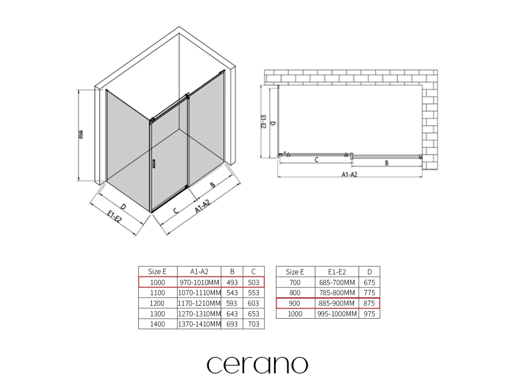 W ramach tej serii oferujemy szeroki wybór wymiarów, aby sprostać zróżnicowanym potrzebom naszych klientów. Wszystkie kabiny prysznicowe, drzwi i parawany CERANO są w pełni kompatybilne z brodzikami CERANO o tych samych wymiarach, co zapewnia bezproblemowy montaż i idealne dopasowanie. Ponadto kabinę można elastycznie zamontować – na pasującym brodziku lub bezpośrednio na podłodze, w zależności od preferencji i wyposażenia łazienki.